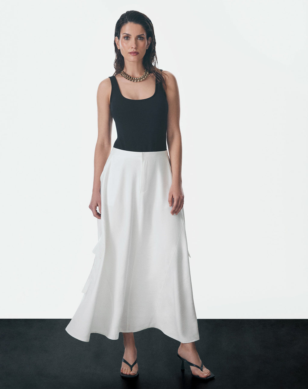 Modelo tem 1.76m de altura e veste o tamanho P / 36