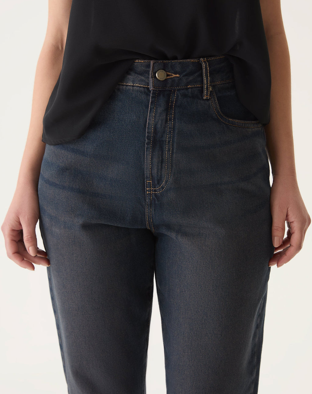 Com design vintage e cintura média, a Calça Mom Jeans é a peça must-have para um visual descolado e atemporal. Feita em jeans de algodão, seu comprimento midi e estilo mom garantem um look elevado e versátil para diversas ocasiões.