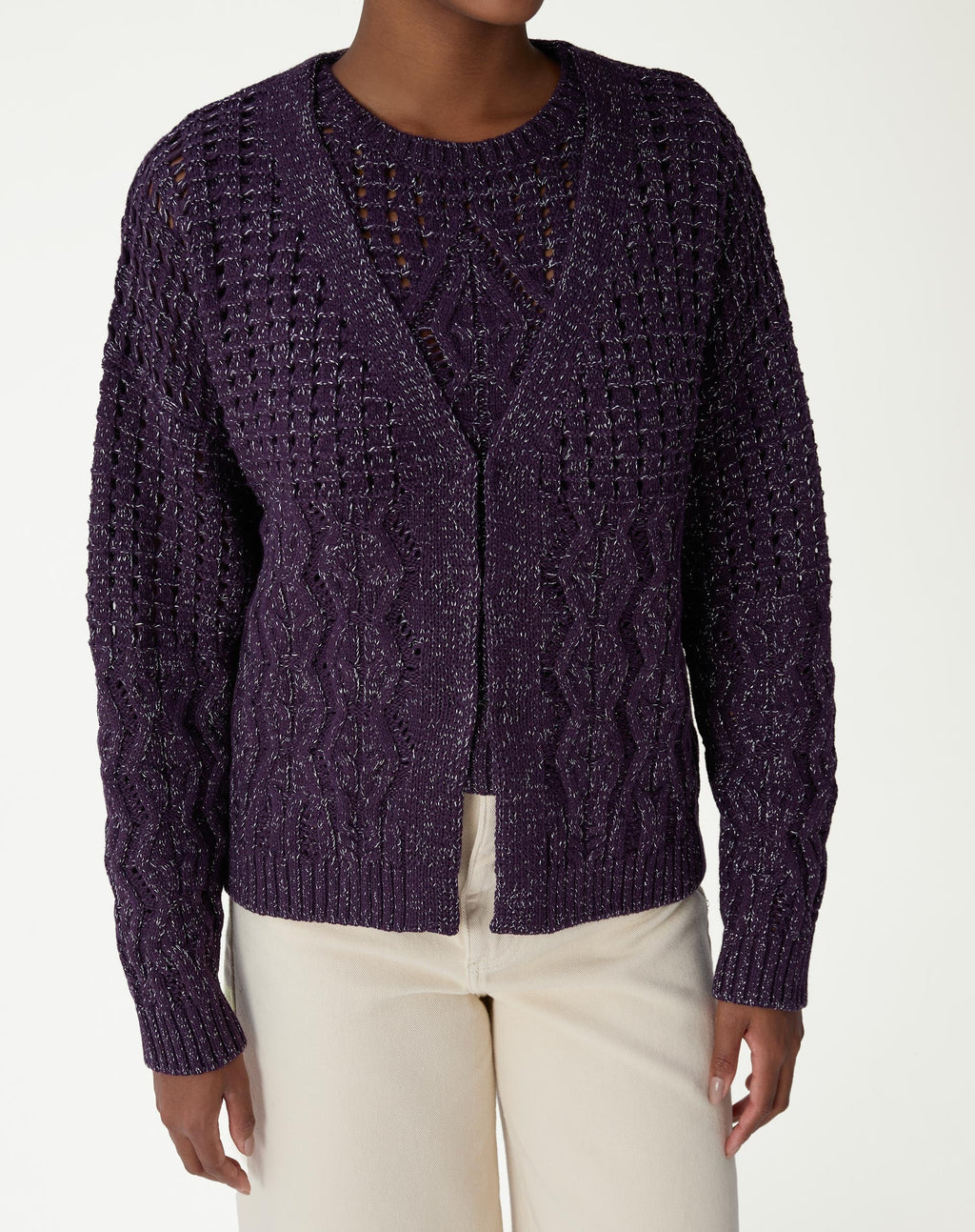 CARDIGAN TRICOT PONTO DIFERENCIADO - ROXO