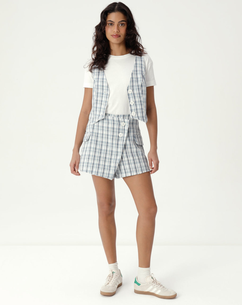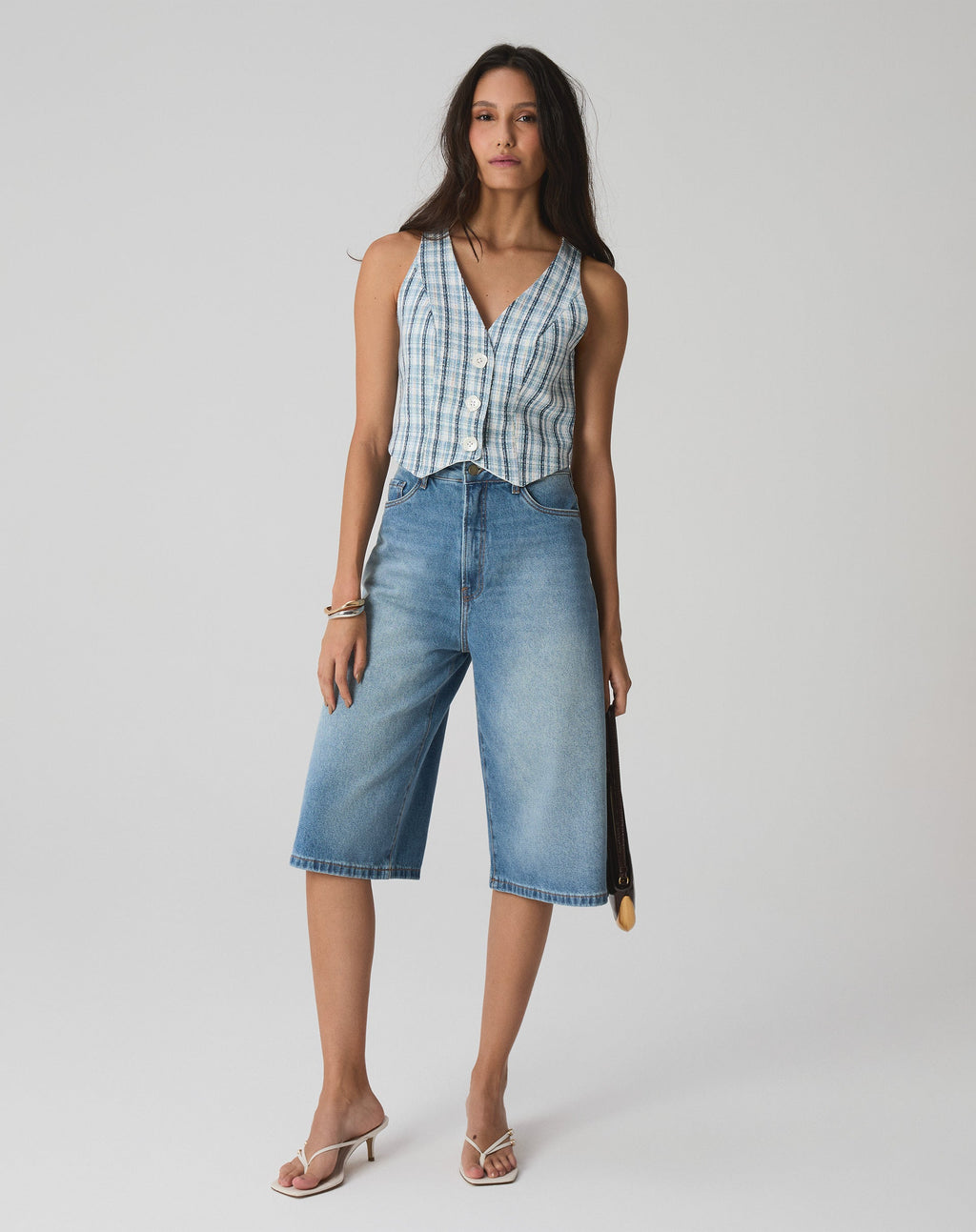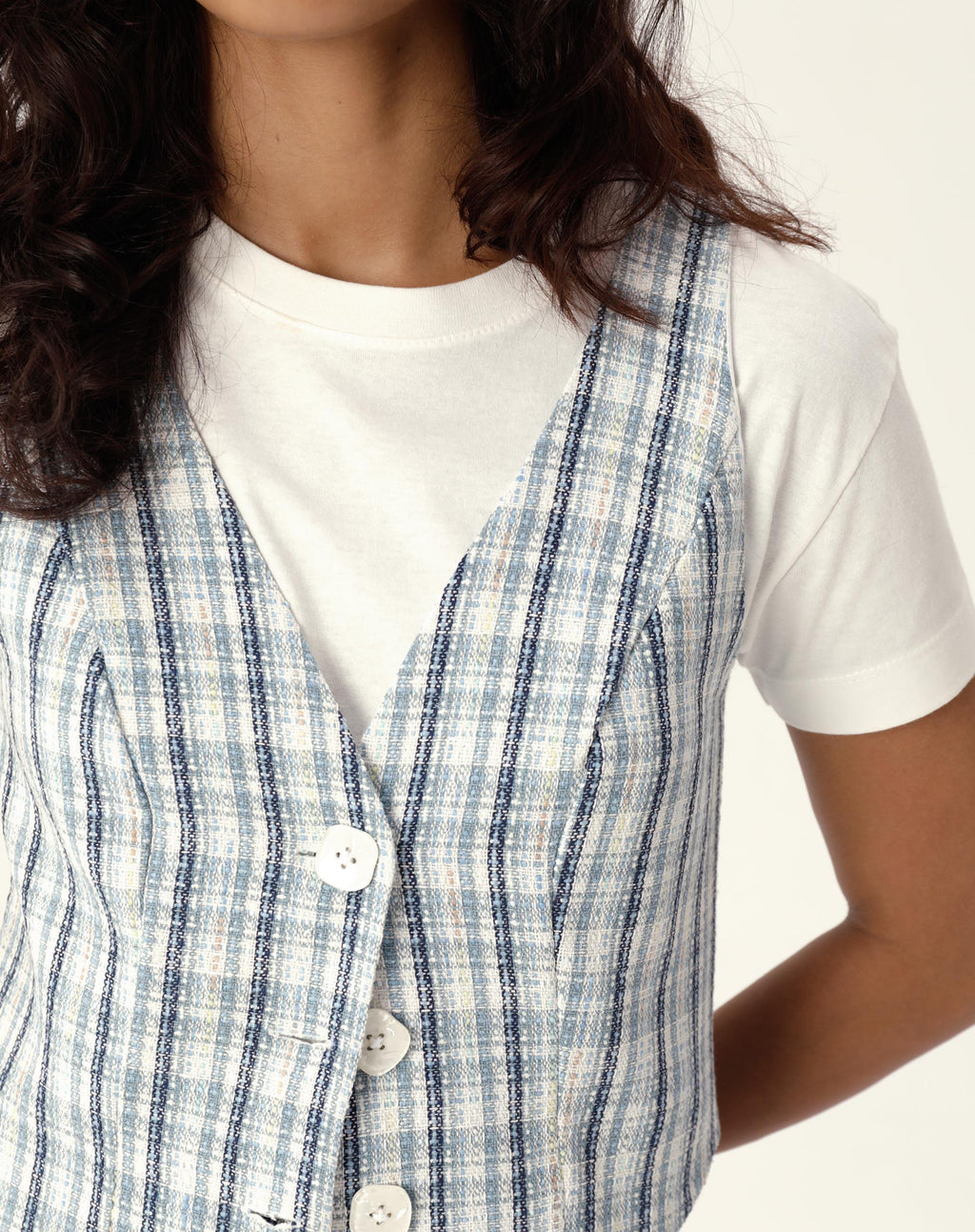 Um clássico reinventado! O colete de alfaiataria com decote em V é a peça-chave para um look elegante e moderno. Feito em tweed com estampa xadrez, é perfeito para compor um visual sofisticado e despojado ao mesmo tempo.