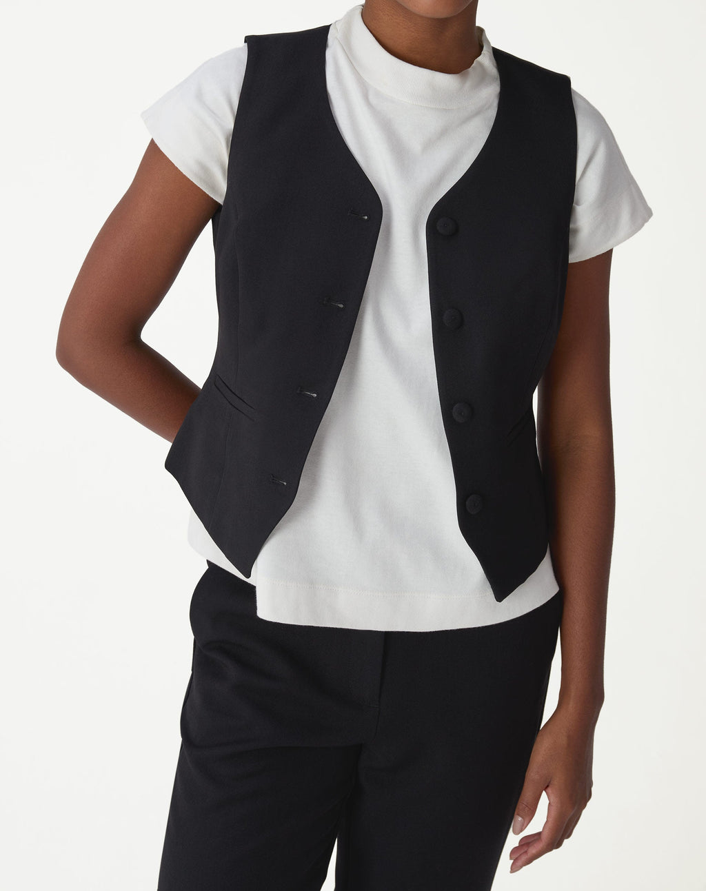 Destaque-se com o Colete Slim com Botão Forrado Alfaiataria, uma peça versátil e atemporal. O design midi, sem alça e em tecido plano de poliéster, viscose e elastano, traz elegância e sofisticação para qualquer ocasião, do trabalho ao happy hour.