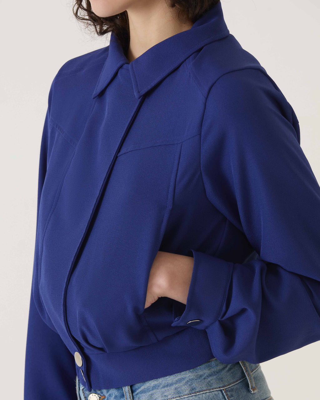 Sinta-se poderosa com nossa Jaqueta Curta de Alfaiataria. Com design minimalista e corte impecável, essa peça é perfeita para um look elegante e moderno. Feita com tecido de alta qualidade, é ideal para um evento importante ou para elevar seu visual do dia a dia.
