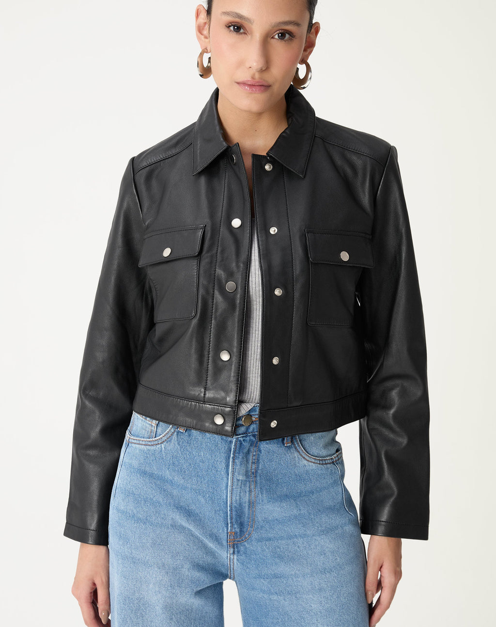 Desenvolvida para a mulher moderna e sofisticada, a Jaqueta de Couro 2 Bolsos é um item curinga que não pode faltar no seu closet. Com corte reto, gola e mangas longas, é confeccionada em couro de alta qualidade, proporcionando um look elevado e cheio de estilo. Perfeita para compor desde produções mais casuais até as mais descoladas e trendy.