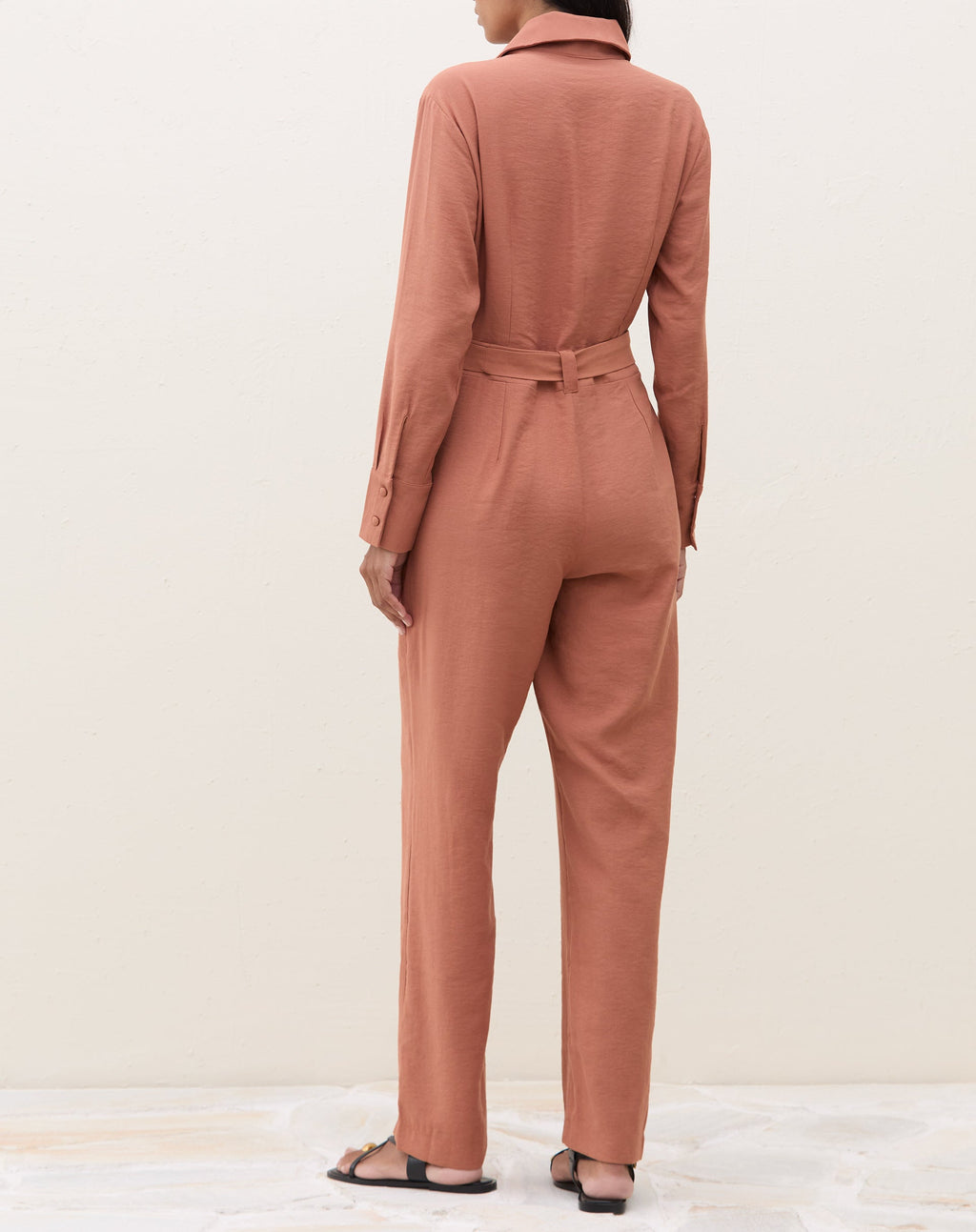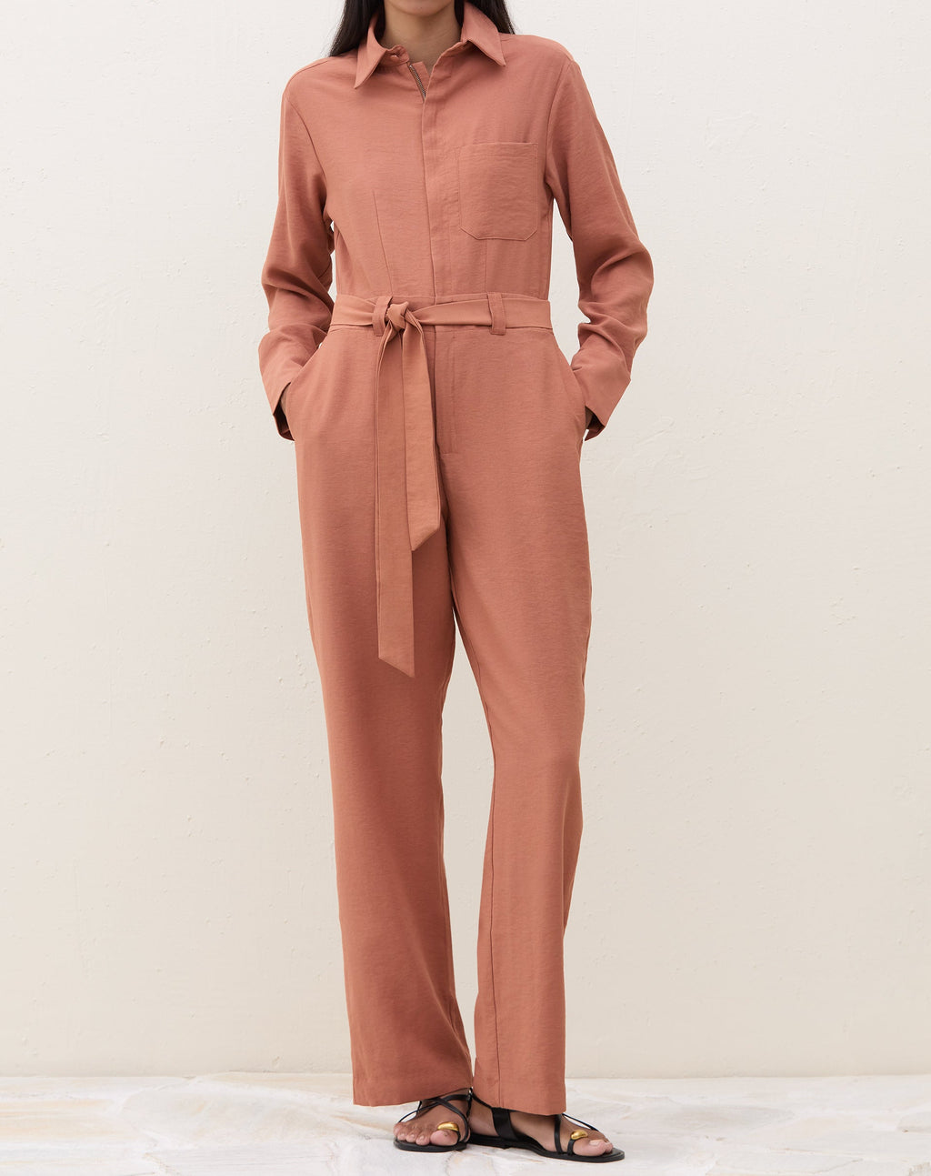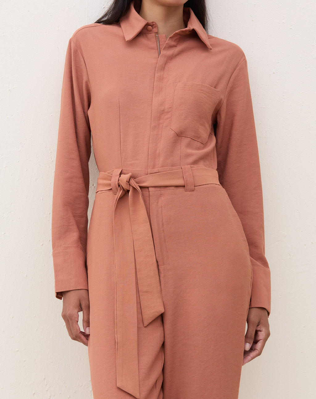 Macacão elegante e versátil, perfeito para um jantar especial. Com amarração na cintura e gola de camisa, é uma peça atemporal e sofisticada para mulheres modernas.