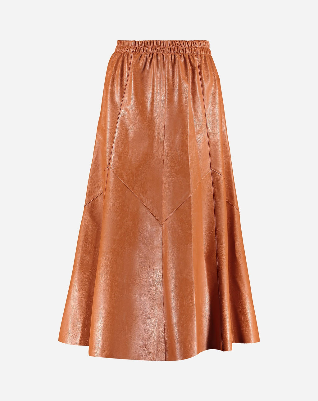 Desperte olhares com a saia midi statement! Com recortes assimétricos e cintura alta, essa peça em poliuretano é o item ideal para um look elevado e descolado. Perfeita para eventos sofisticados ou um jantar especial.