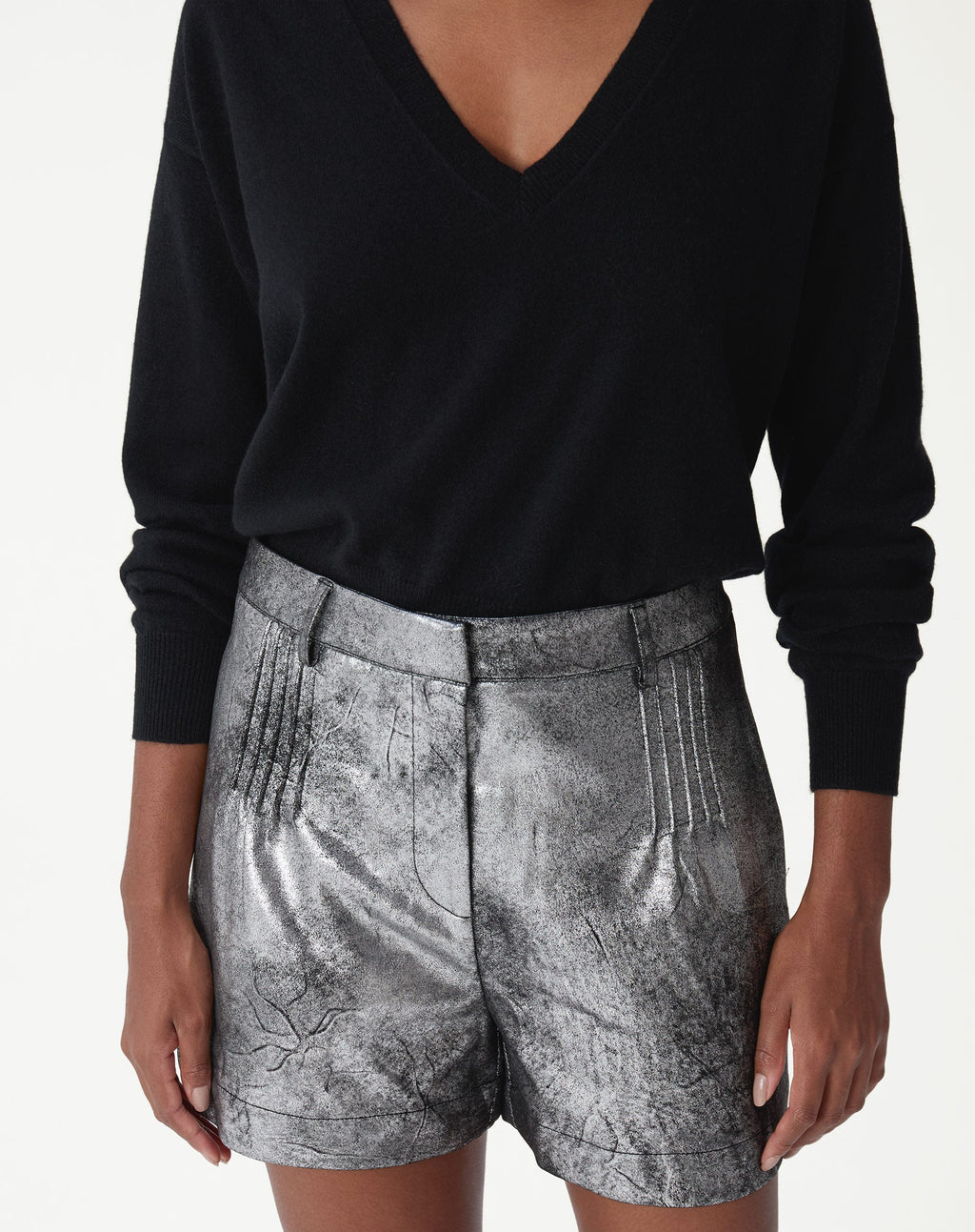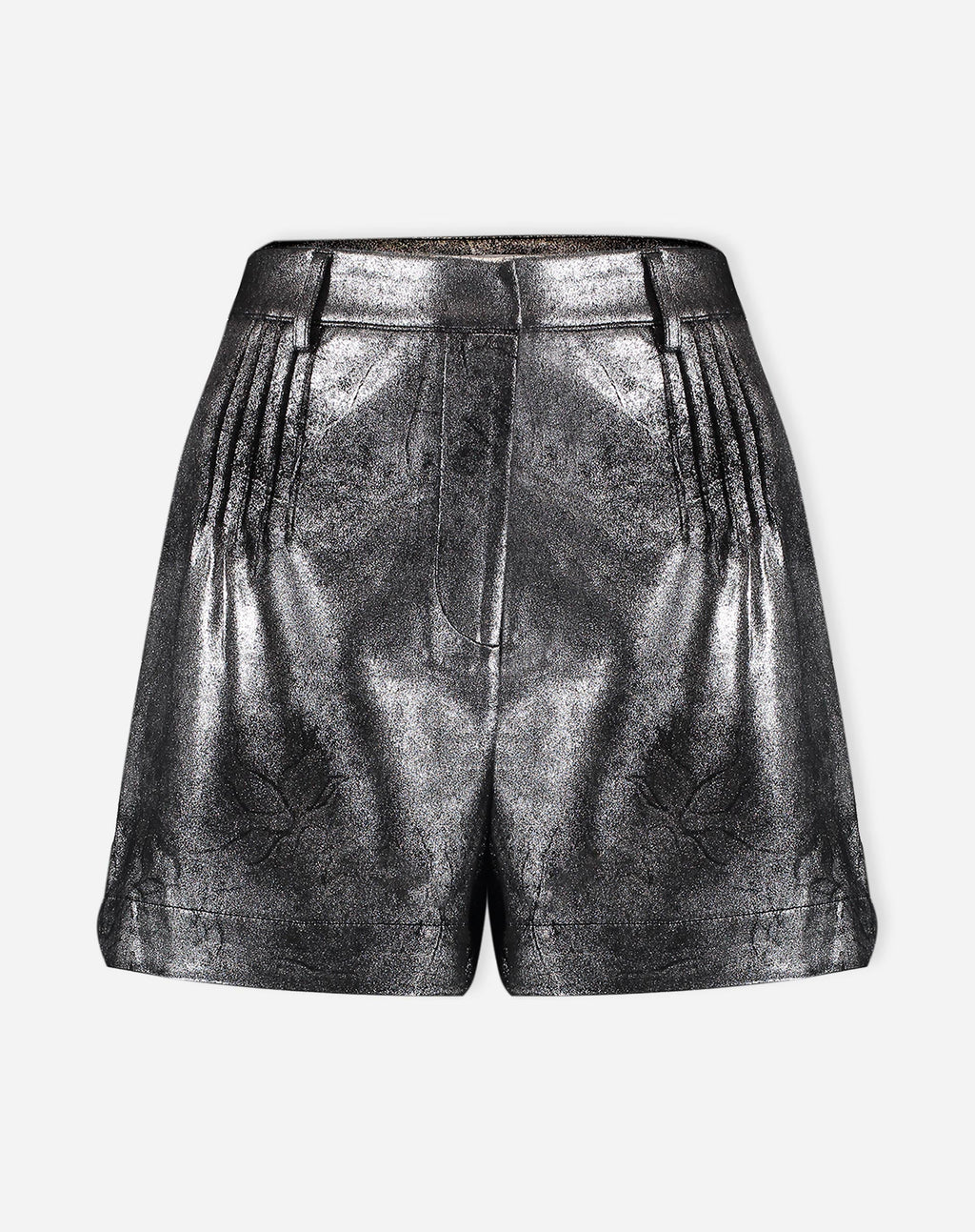 Desenvolvido para mulheres sofisticadas, o Shorts com Pregas Metalizado é um item must-have para o seu closet de verão. Sua modelagem reta e comprimento curto garantem um look elevado e versátil, perfeito para ocasiões especiais ou um dia casual. Feito em tecido de suedine e com detalhes metalizados, é a peça ideal para quem busca estilo e conforto em um único produto.