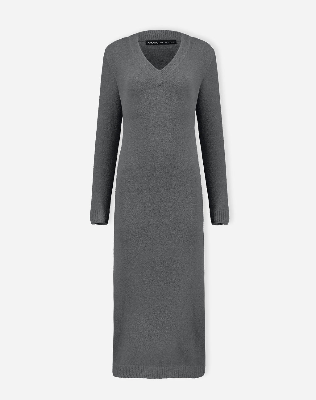VESTIDO MÍDI TRICOT MANGA LONGA - CHUMBO